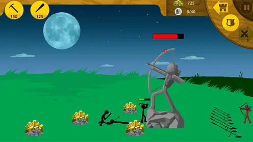The core challenge lies in managing your economy and military simultaneously. Every match is a race to gather gold, train units, and strategically deploy them to breach enemy defenses and shatter their central statue before they can destroy yours.